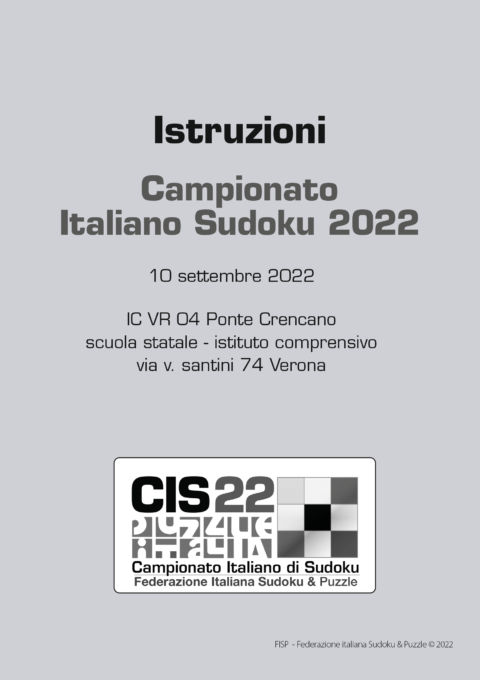 NUOVA VERSIONE Il libretto con le istruzioni dei sudoku che saranno utilizzati nel campionato italiano di sudoku 2022 (6...